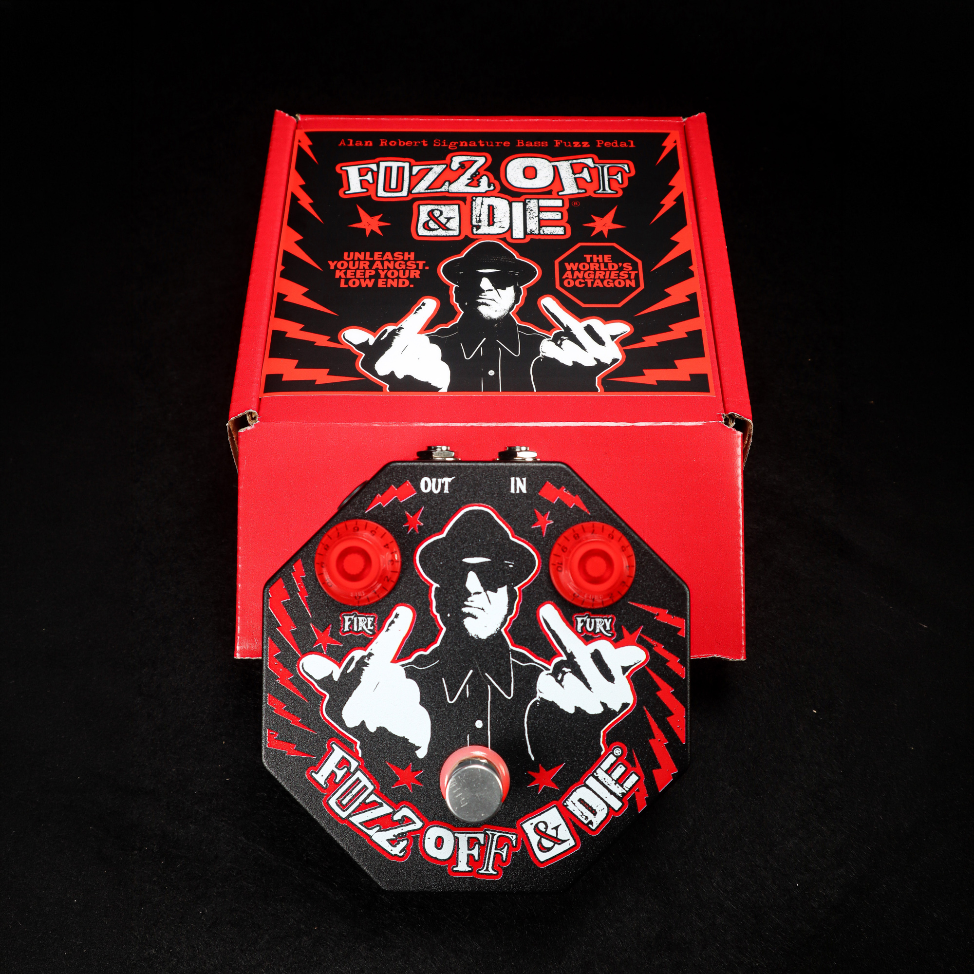 Fuzz Off & Die – Alan Robert Signature Fuzz Pedal is a limited-edition bass fuzz created by Alan Robert of Life of Agony in collaboration with master audio engineer Terry Welty, best known for his work with Geezer Butler’s EMG Pickups and the Ashdown Head of Doom.